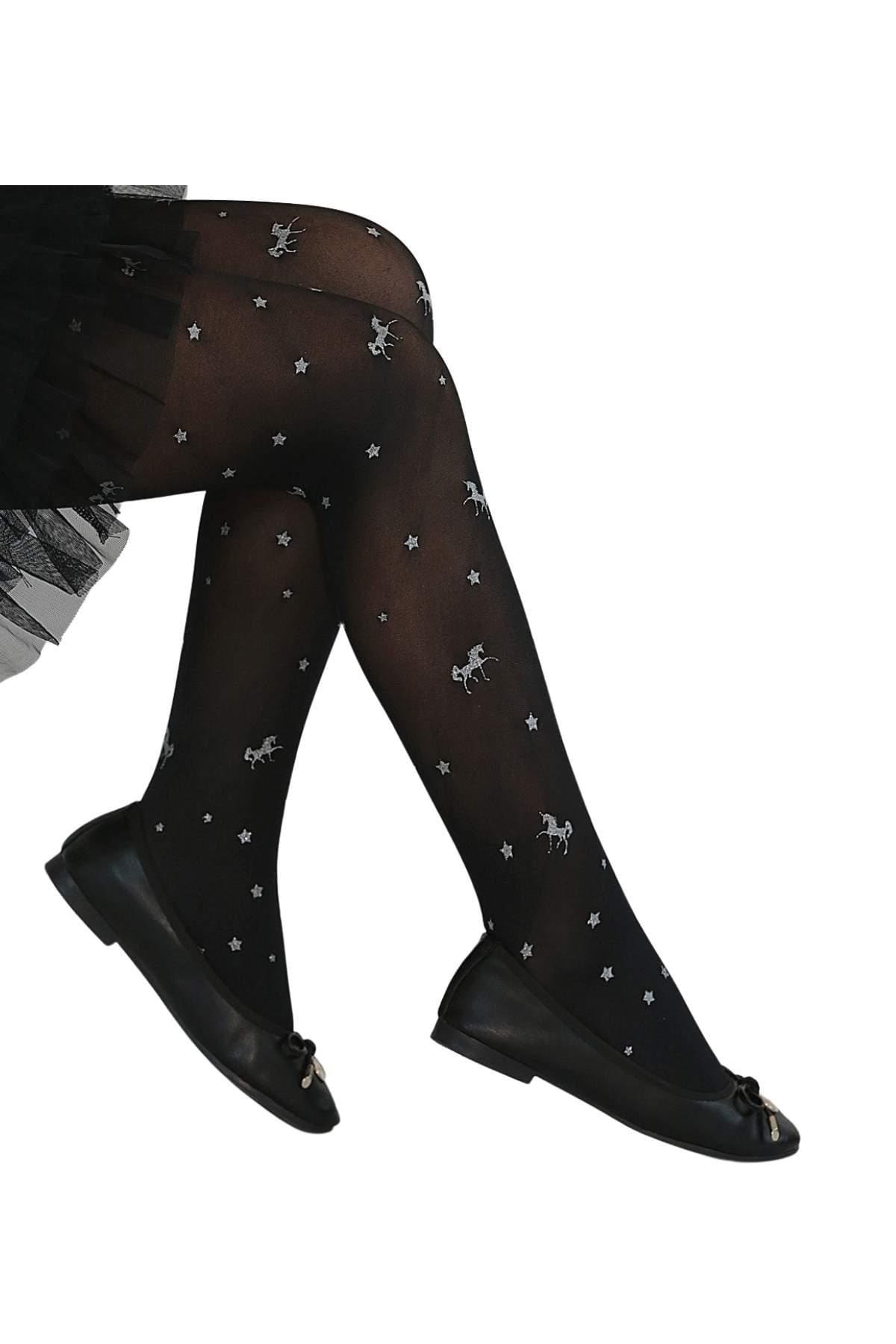 Siyah gümüş renkte, kaydırmaz tabana sahip çocuk külotlu çorap. Yumuşak dokusu ile gün boyu konfor sunar. %91 Polyamide, %9 Elastane