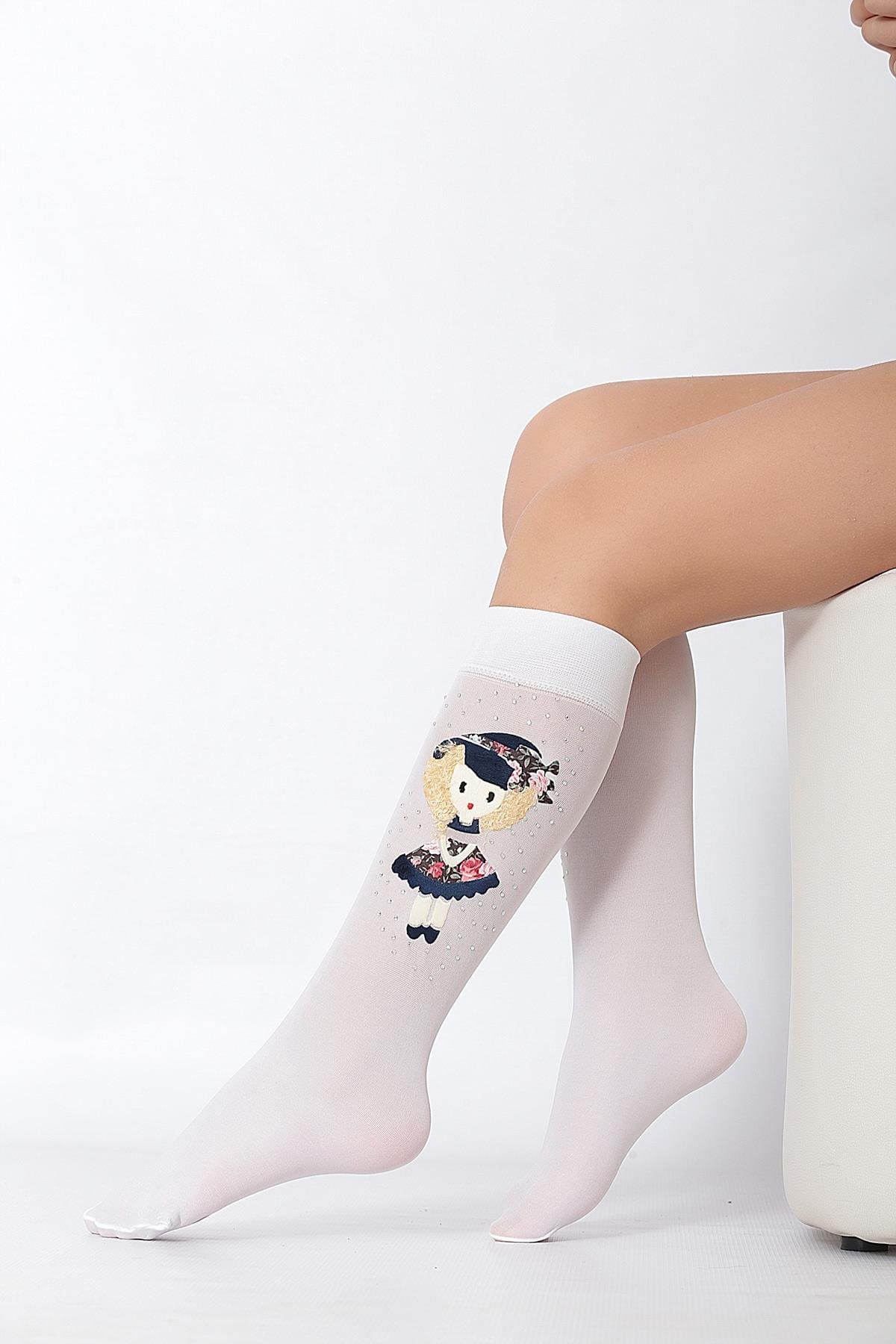 Beyaz renkte, kaydırmaz tabanlı ve elastik yapıya sahip dizaltı çorap. Konforlu ve hafif doku. %91 Polyamide, %9 Elastane