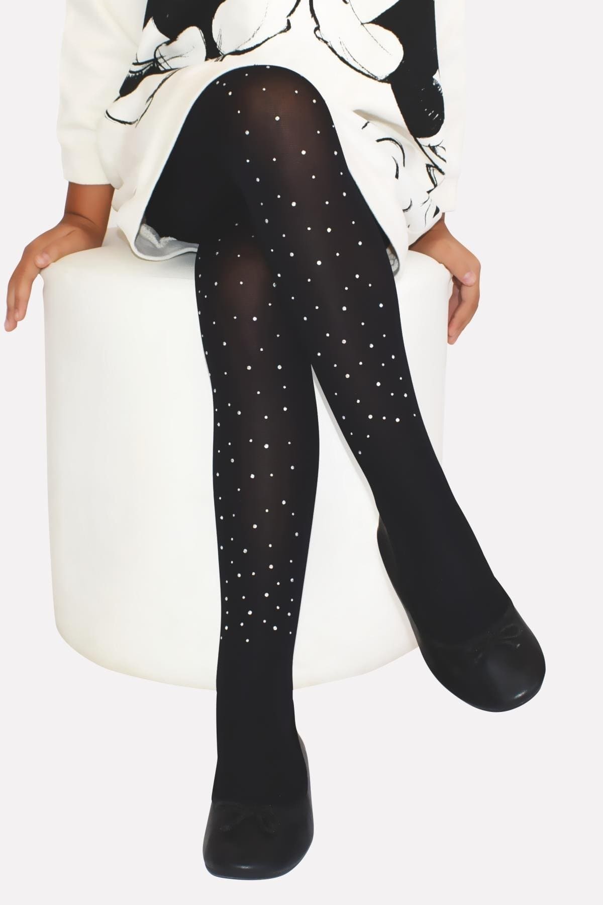 Siyah renkte, kaydırmaz taban özelliğine sahip, ince dokulu çocuk külotlu çorap. %91 Polyamide, %9 Elastane