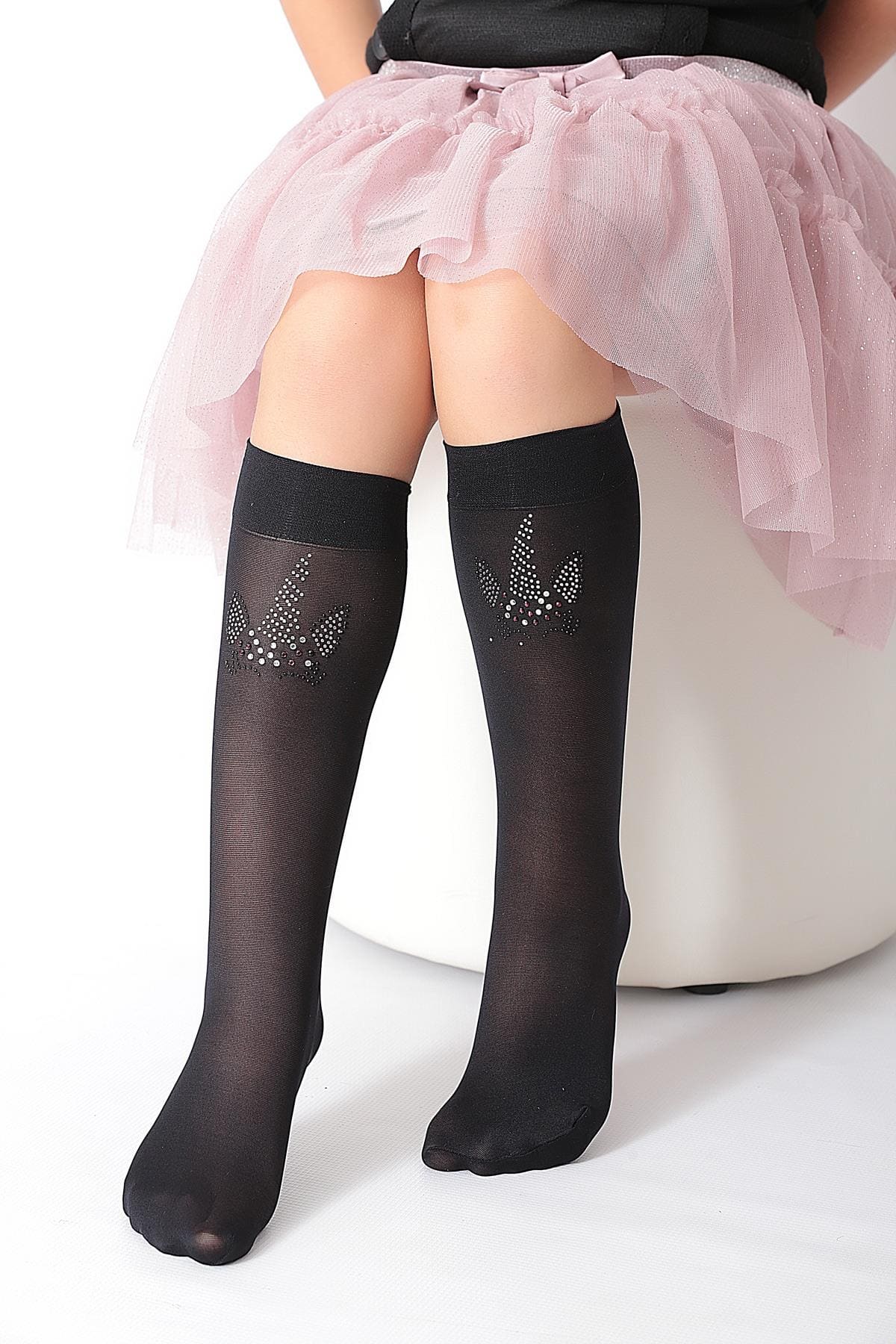 Siyah renkte, unicorn desenleriyle süslenmiş çocuk dizaltı çorap, yumuşak dokusu ve kaydırmaz taban yapısıyla dikkat çekiyor. %89 Polyamide, %11 Elastane