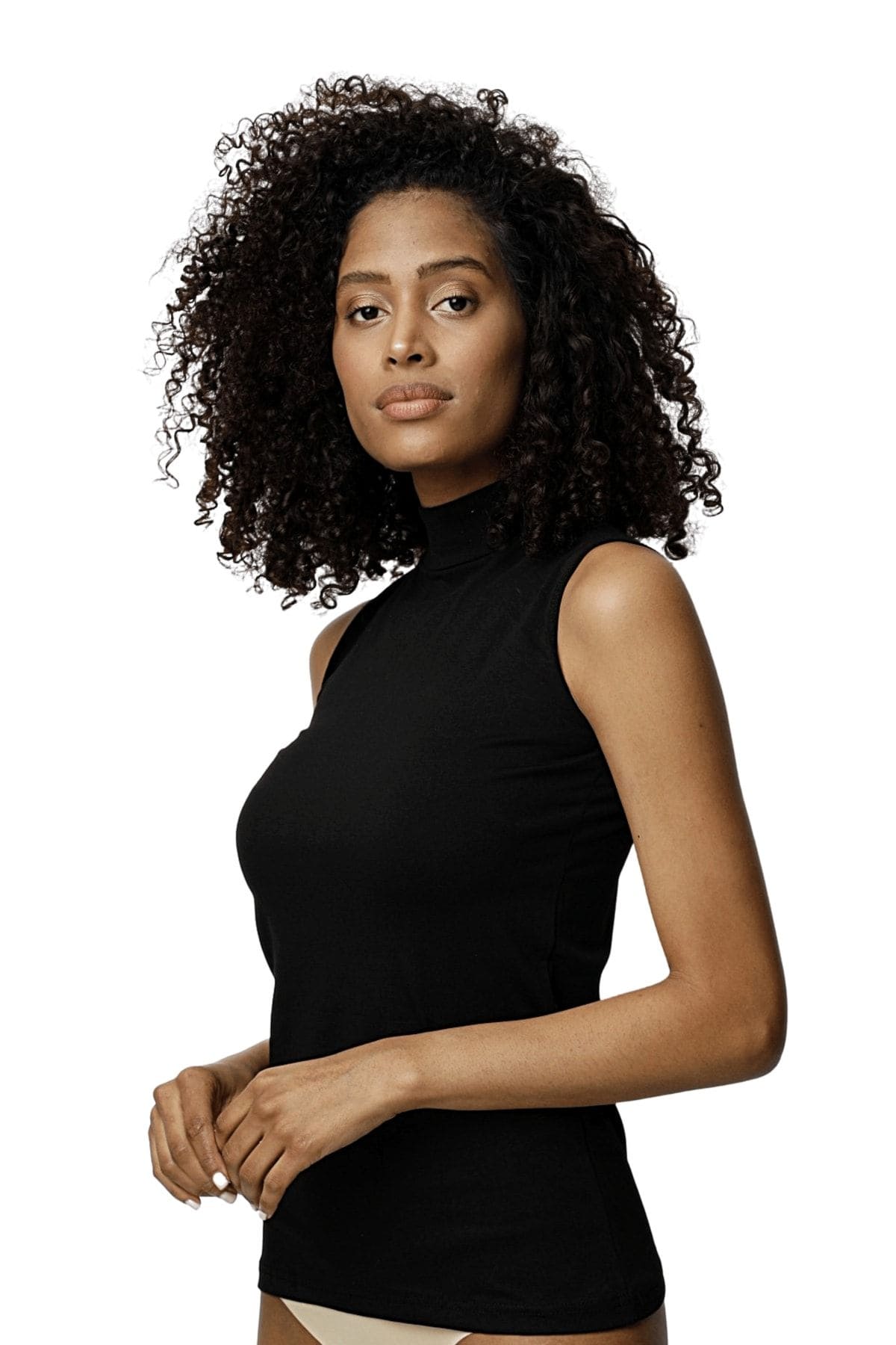 Somon renginde, kolsuz boğazlı body, hafif dokusu ve esnek kesimi ile rahat bir kullanım sunar. %90 Poliamid, %10 Elastan