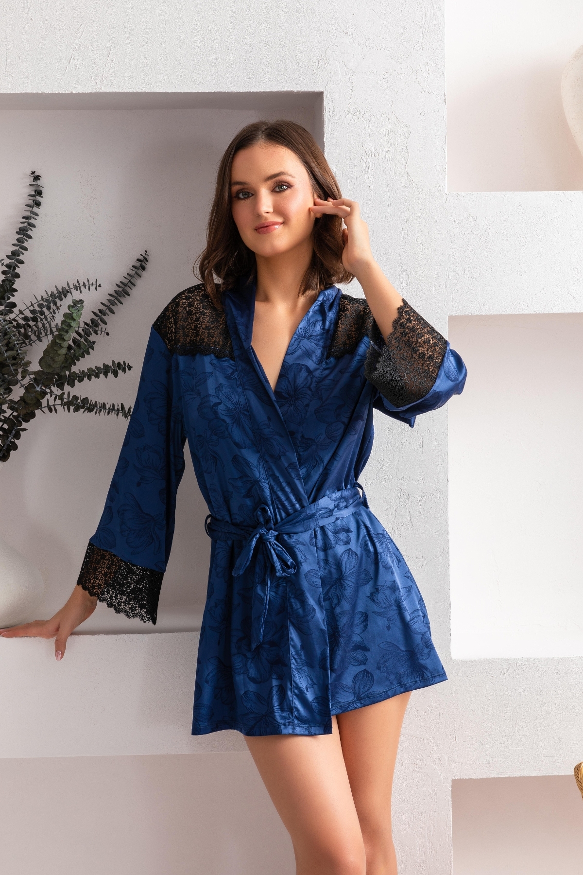 Kuşakli Mini Boy Sabahlik Lacivert Gallipoli MGP12116