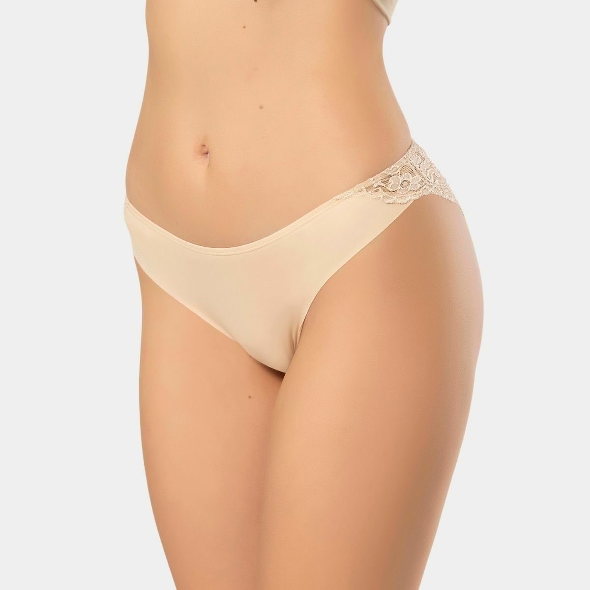 Ten rengi, lazer kesim detayına sahip pamuklu slip külot, arka kısmında zarif dantel detayı ile tasarlanmıştır. %88 Supima Pamuk, %12 Elastan