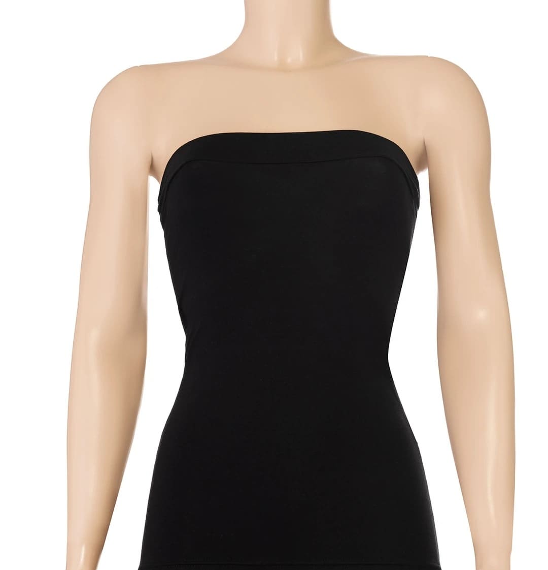 Siyah, likralı dokusu ile rahat bir kullanım sunan, ince askılı kadın atleti.