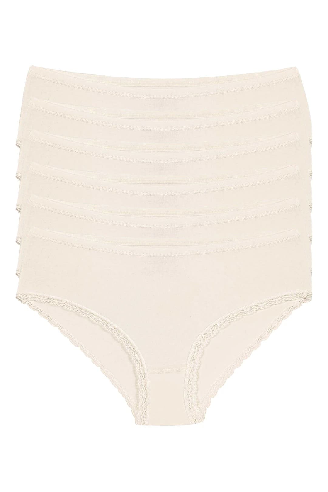 Ekru renkli, dantel detaylı yüksek bel bato külot, yumuşak pamuklu dokusu ile rahat bir kullanım sunar. %95 Pamuk, %5 Elastan