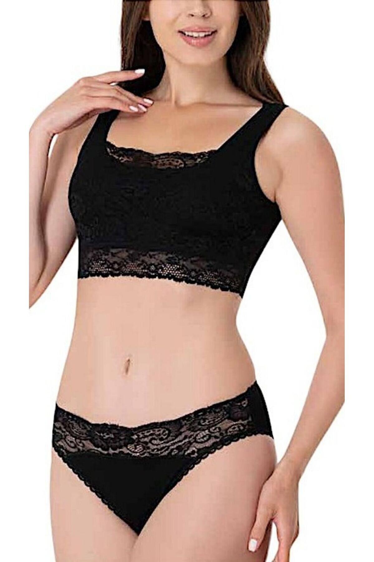 Siyah renkte, dantel detaylı, geniş askılı büstiyer. Modal kumaşı sayesinde hafif ve esnek bir yapıya sahip. %47 Modal, %47 Pamuk, %6 Elastan