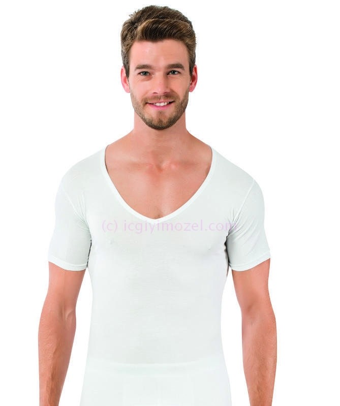 Siyah, antrasit ve beyaz seçenekleriyle modal ribana kumaşından üretilen V yaka yarım kol fanila. %45 Modal, %45 Koton, %10 Elastan