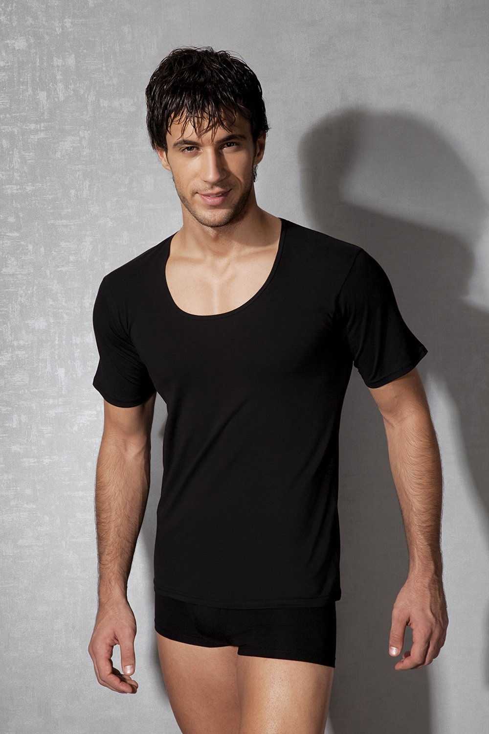 Siyah renkte, V yaka kesimli modal erkek atlet, hafif dokusu ile gün boyu konfor sunar. %45 Modal, %45 Pamuk, %10 Elastan