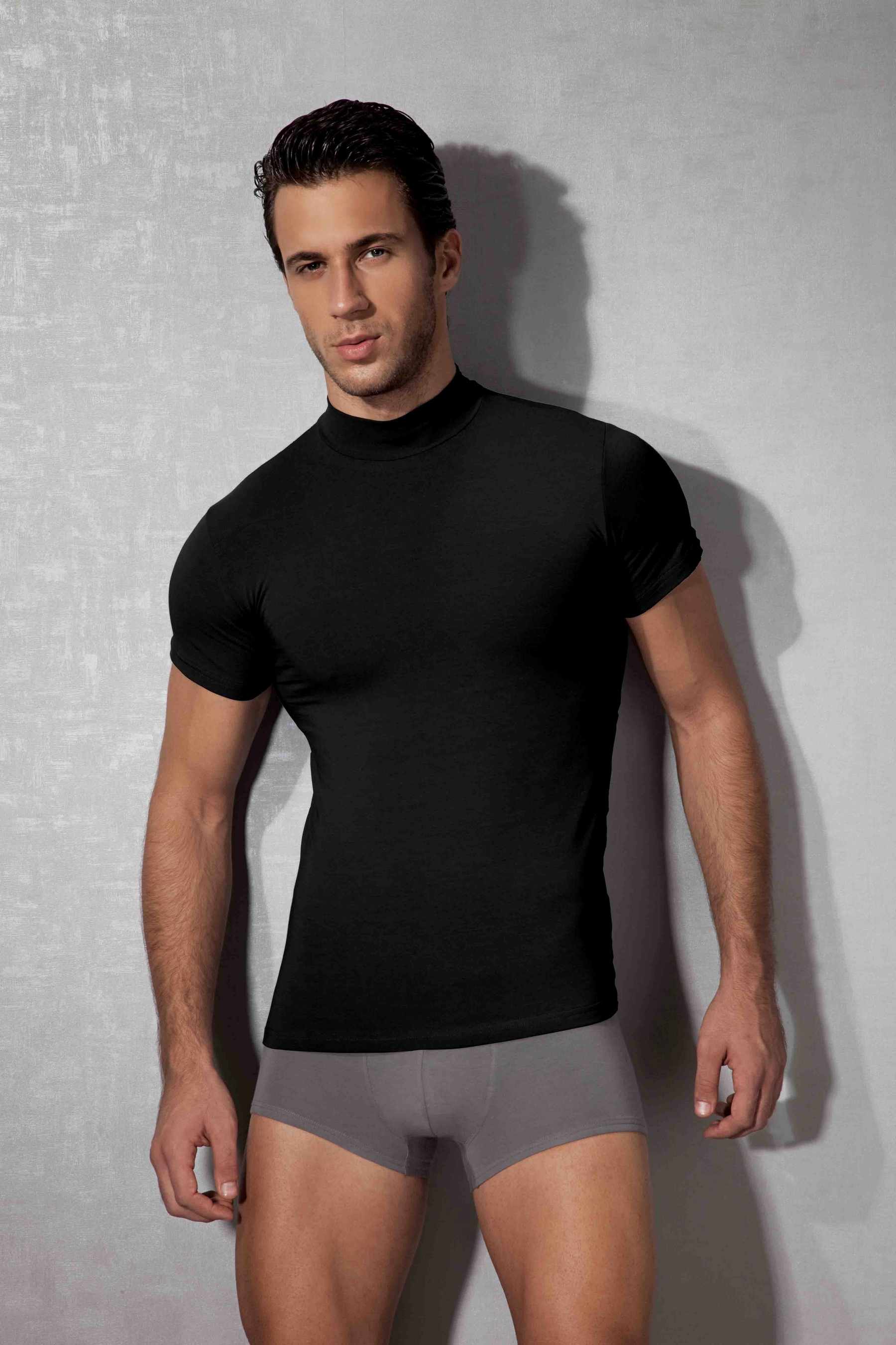 Siyah, V yaka kesimli modal erkek atlet, hafif ve nefes alan dokusuyla dikkat çekiyor. %45 Modal, %45 Pamuk, %10 Elastan