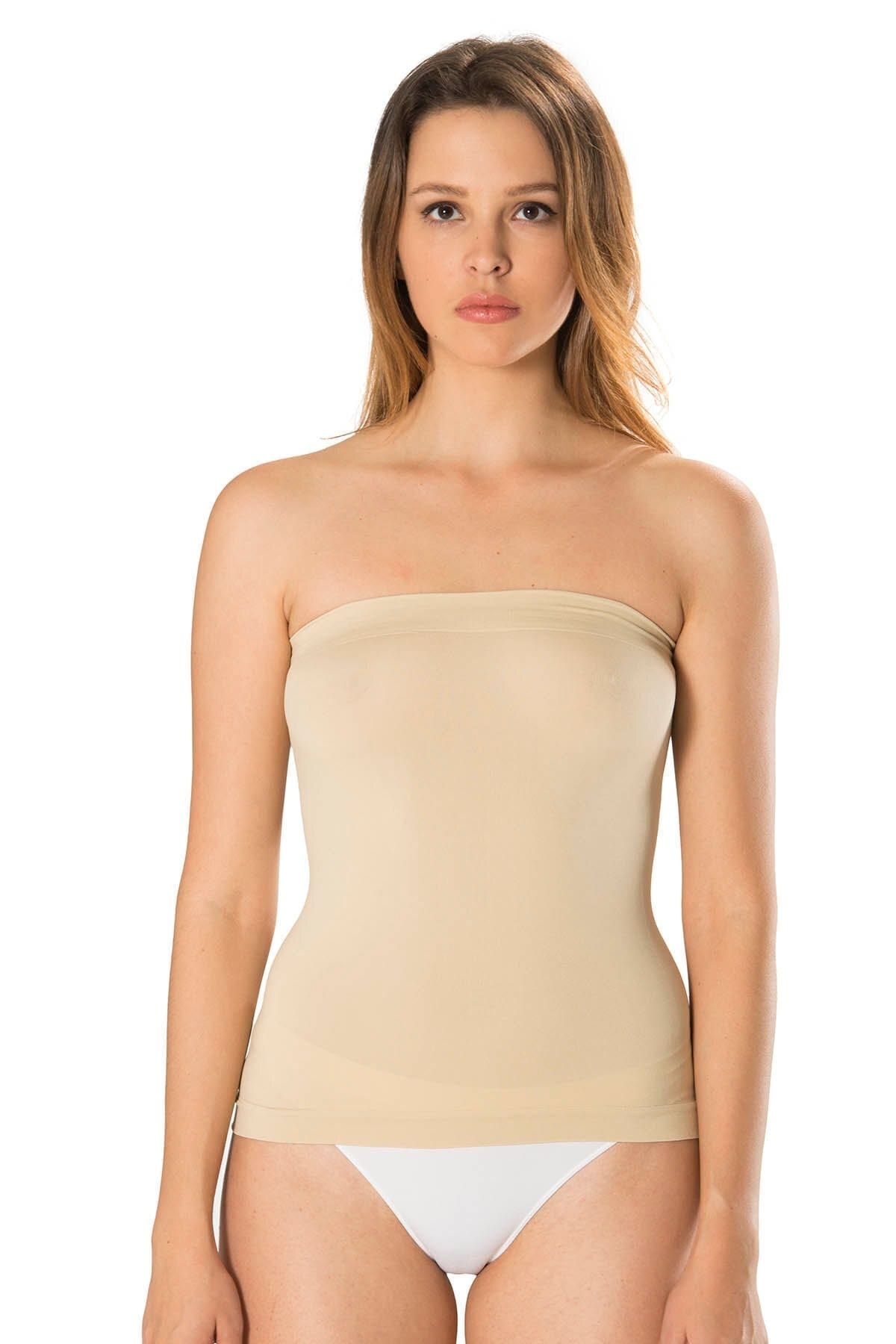 Beyaz ve siyah renk seçenekleriyle, uzun boy ve esnek kesime sahip, rahat bir straplez body. %90 Poliamid, %10 Elastan