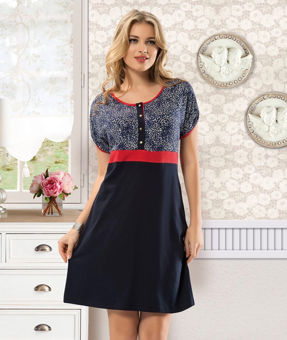 Lacivert renkte, düğmeli kesimiyle şık bir tunik. Yumuşak modal kumaş, rahatsızlık vermeden gün boyu giyilebilir.
