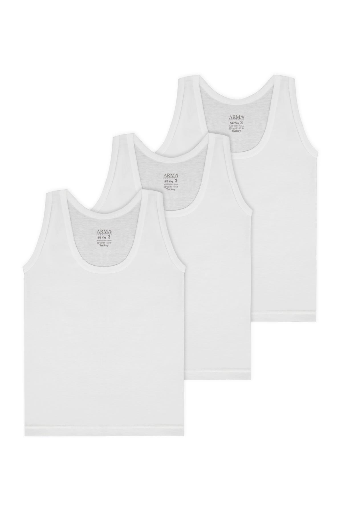 Beyaz renkli, pamuk ribana kumaştan üretilmiş, rahat kesime sahip çocuk atleti. 3'lü paket olarak sunulmaktadır. %100 Pamuk Ribana