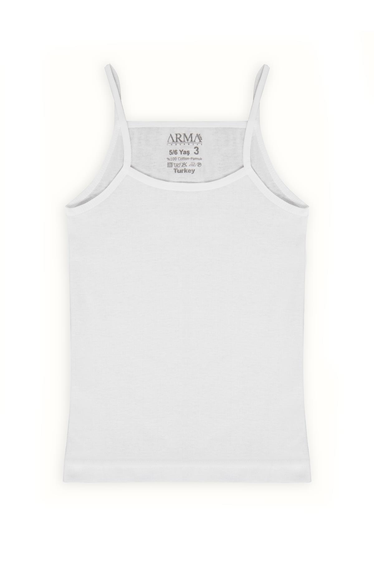 Beyaz renkli, pamuk ribana dokusuna sahip ip askılı çocuk atleti, rahat bir kesime sahiptir. %100 Pamuk Ribana