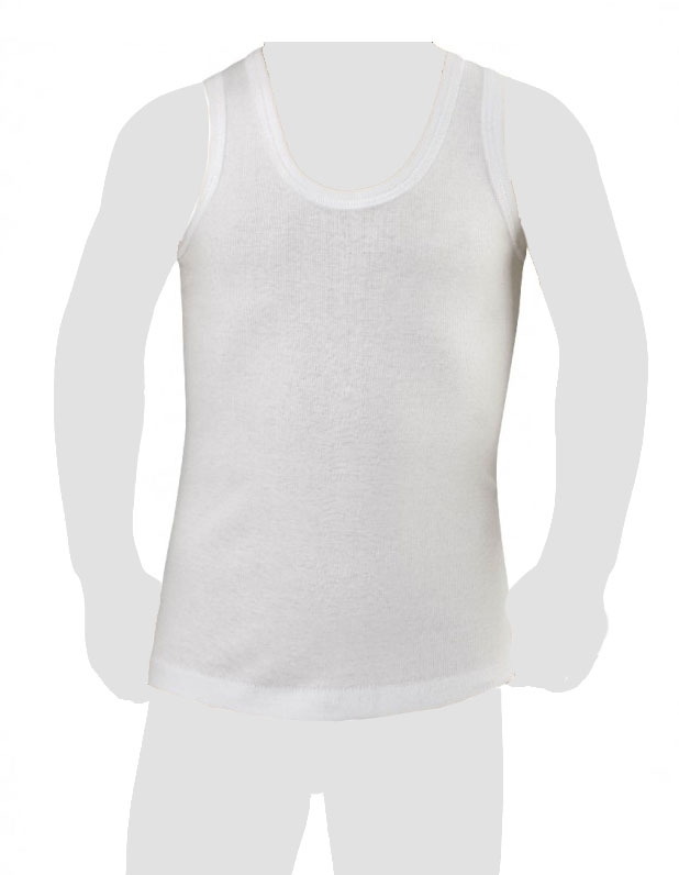 Beyaz renkte, pamuk ribana dokusuna sahip atlet, rahat kesimiyle çocuklar için idealdir. %100 Pamuk Ribana