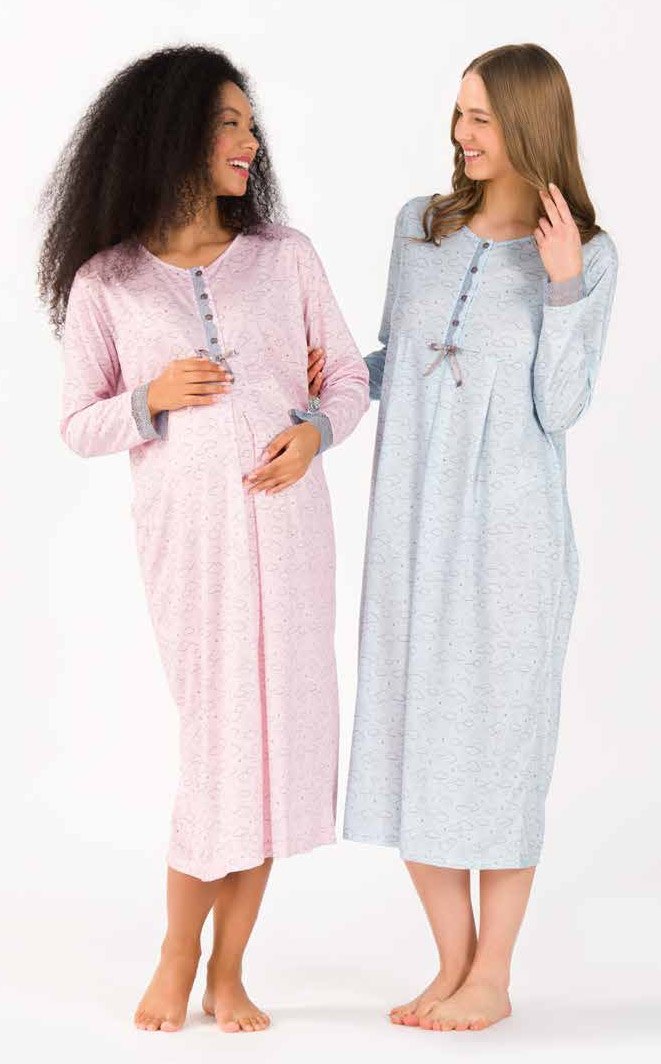 Mavi tonlarında, pamuklu astarıyla cilde dost bir emzirme sütyeni. Pratik klips mekanizması sayesinde kolayca açılıp kapanır.
