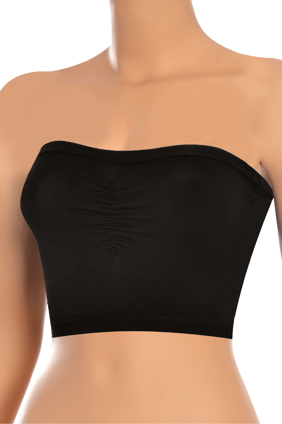Siyah renkte, dantel detaylı, balensiz ve esnek kesim yapısıyla tasarlanmış straplez büstiyer. %96 Pamuk, %4 Elastan