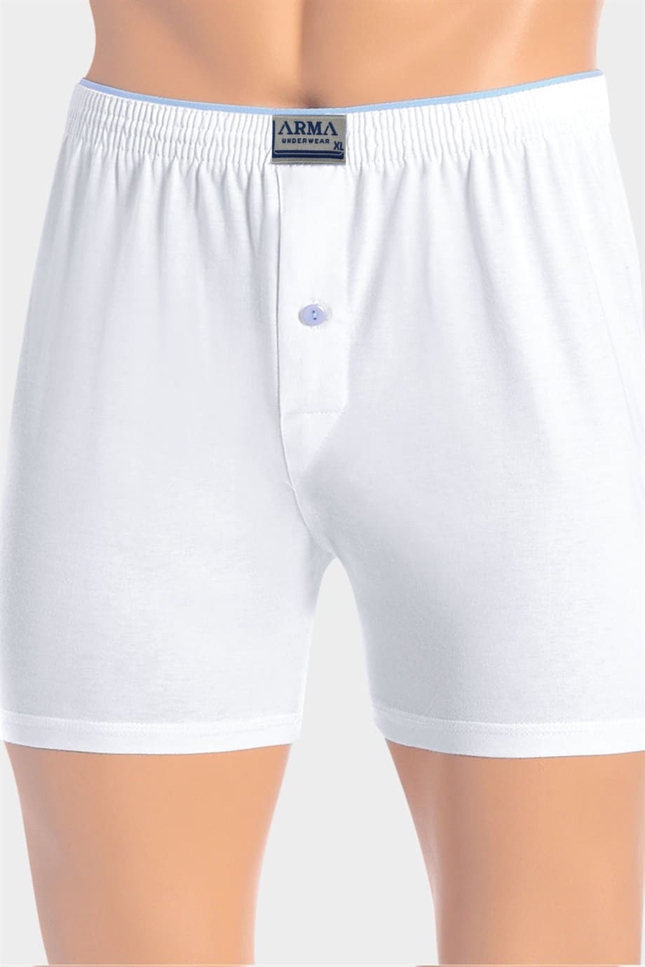 Beyaz renkte, düğmeli havlu bel detayı ve yumuşak pamuklu kumaşıyla konfor sağlayan boxer. %100 Pamuk
