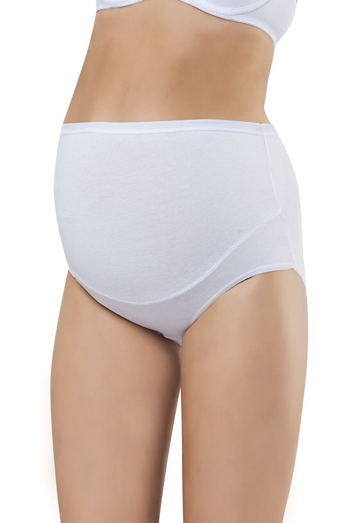 Beyaz renkte, yumuşak pamuk dokulu ve karın altı destek paneli bulunan hamile bato külot. %92 Koton, %8 Elastan