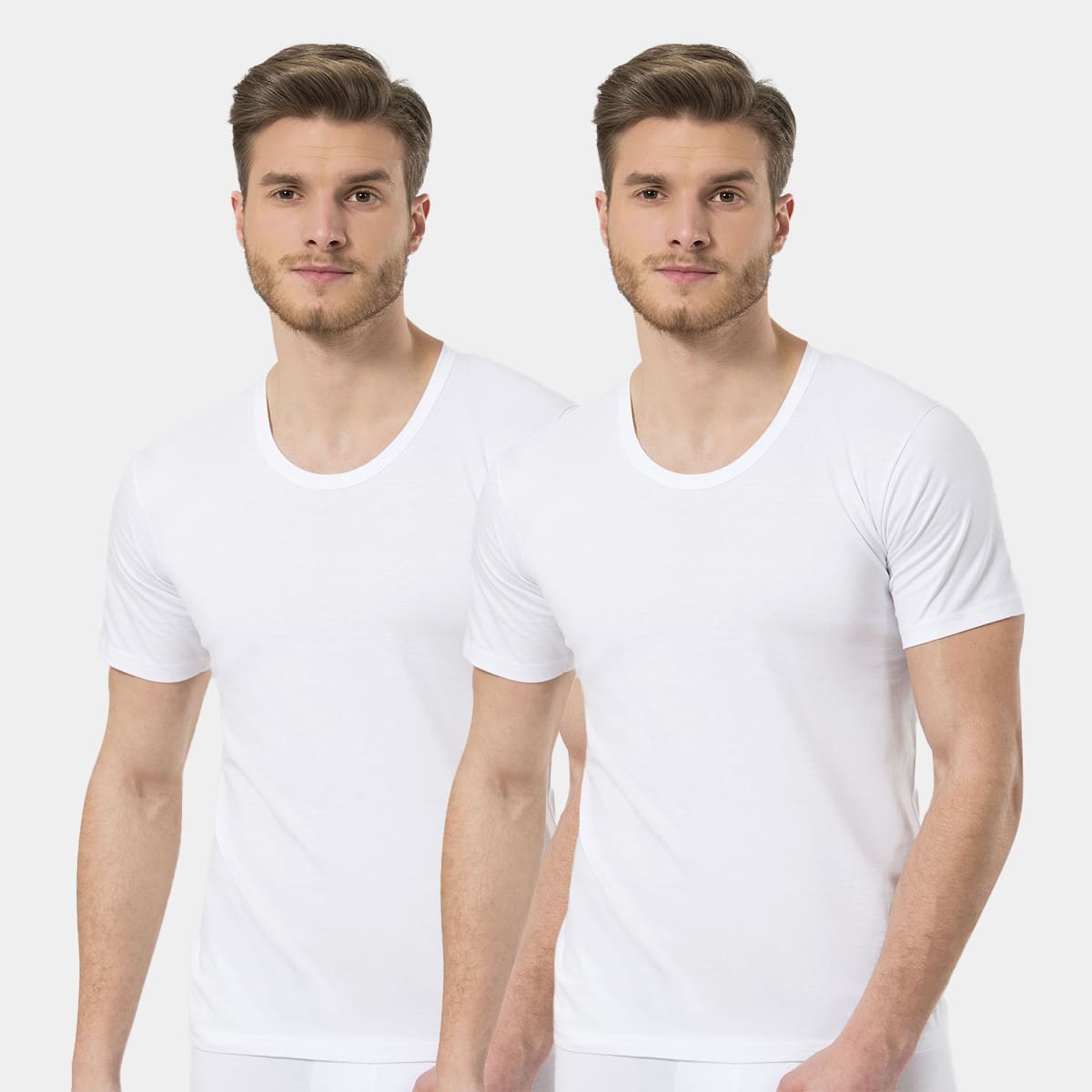 Beyaz renkte, pamuklu dokusu ve geniş bisiklet yakası ile rahat bir kullanım sunan fanila takımı. %100 Pamuk