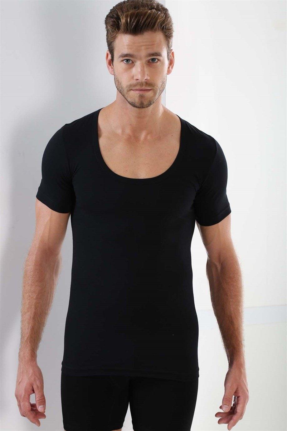 Siyah, pamuklu, yuvarlak yaka atlet. Yumuşak dokusu ve esnek yapısıyla konfor sunar. %100 Pamuk