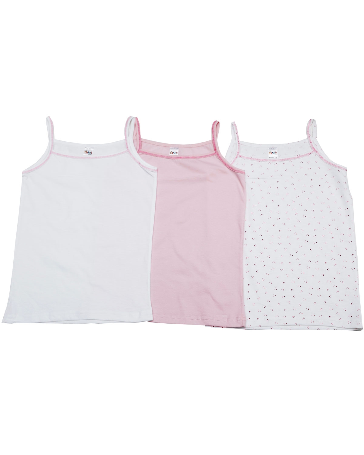 Beyaz tonlarında, geniş ip askılı, pamuklu dokuya sahip, düz kesim çocuk atleti. %100 Koton
