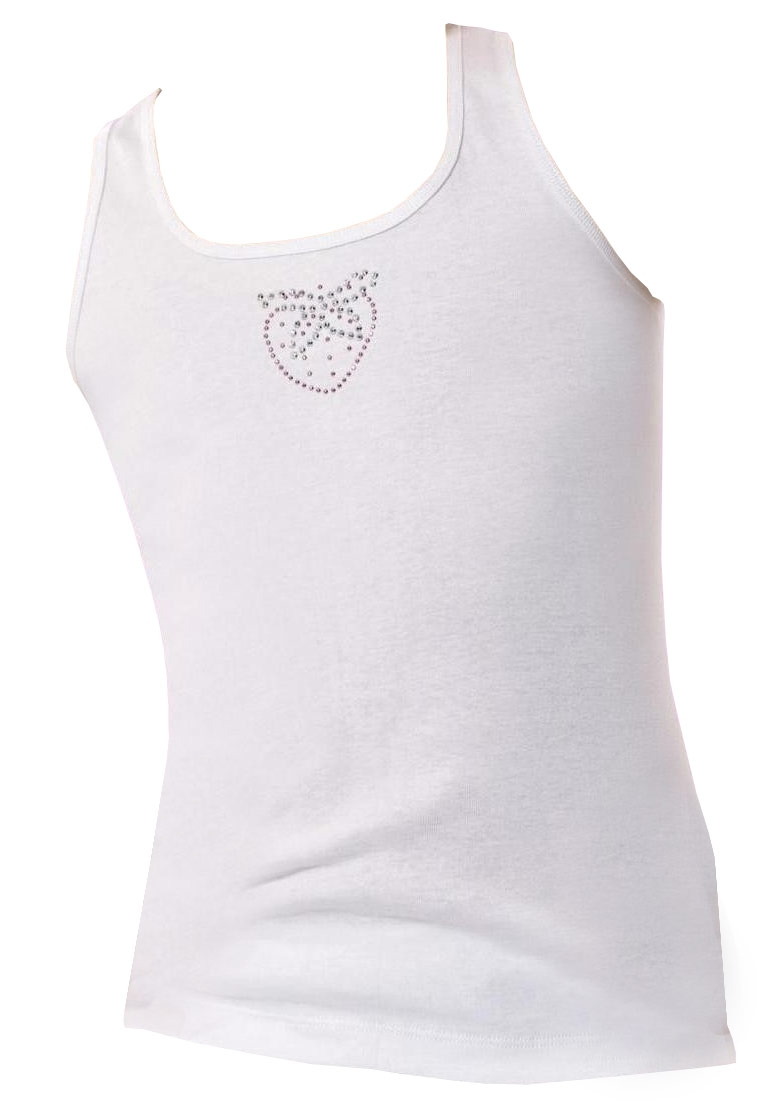 Beyaz renkli, taş detaylı, pamuk dokulu geniş askılı sporcu atlet, rahat bir kesimle tasarlanmıştır. %100 Pamuk