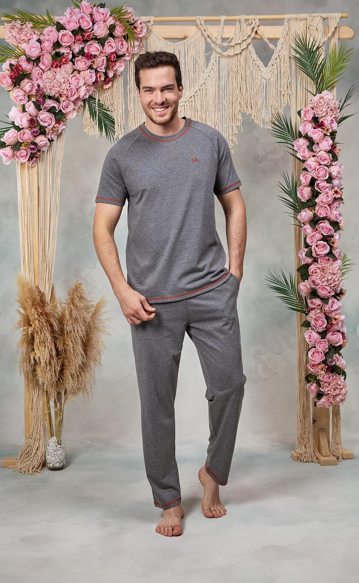 Ev giyimi olarak ideal olan bu takım, uyku sırasında da rahat bir alternatif oluşturur. Kullanılan ribana dikişi, dayanıklılığı ile dikkat çekerken, bisiklet yaka tasarımı ise modern bir görünüm sağlar. Gri tonlarının şıklığı, evde geçireceğiniz zamanlarda bile stilinizi korumanıza yardımcı olacaktır. Ayrıca, bu pijama takımı, hem yatak odasında hem de evde geçirdiğiniz keyifli anlarda sizi rahat ve şık hissettirecek ideal bir parçadır.