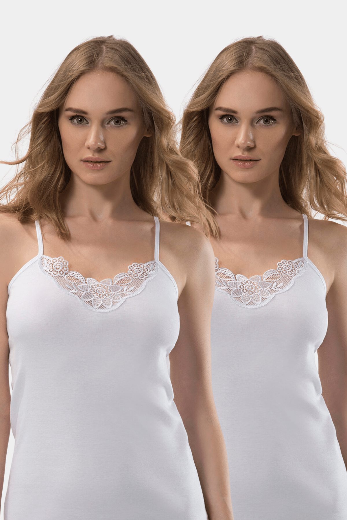 Beyaz renkte, güpür detaylı, ip askılı pamuklu atlet, şık ve rahat bir tasarıma sahip. %100 Pamuk
