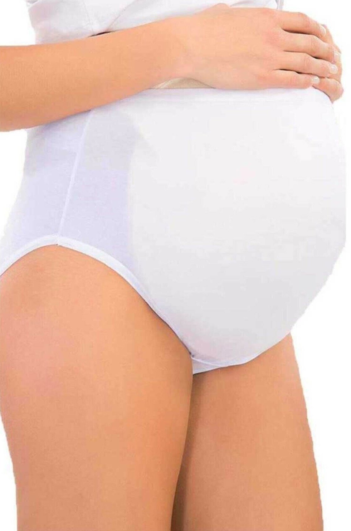 Siyah ve beyaz renk seçeneklerine sahip, yumuşak pamuklu hamile külot, karın altı destek paneliyle tasarlandı.