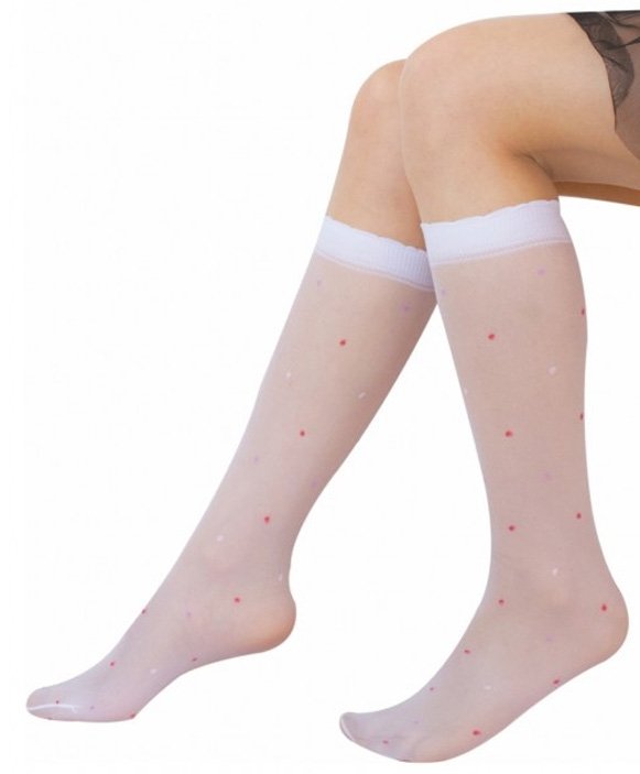 Beyaz renkte, pamuklu dokusuyla konfor sunan çocuk dizaltı çorap.