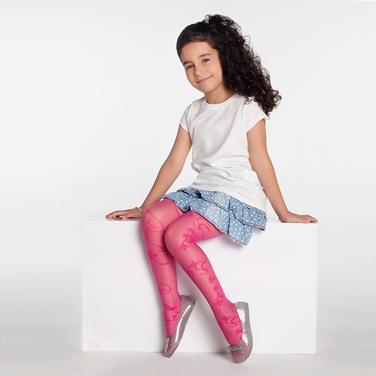 Siyah ve pembe renk seçenekleriyle, ince dokulu, esnek yapıya sahip çocuk külotlu çorap. %90 polyamide, %10 elastane