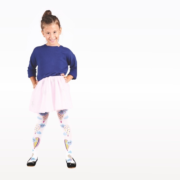 Beyaz renkte, kaydırmaz taban yapısıyla günlük kullanım için ideal çocuk külotlu çorap. %91 polyamide, %9 elastane