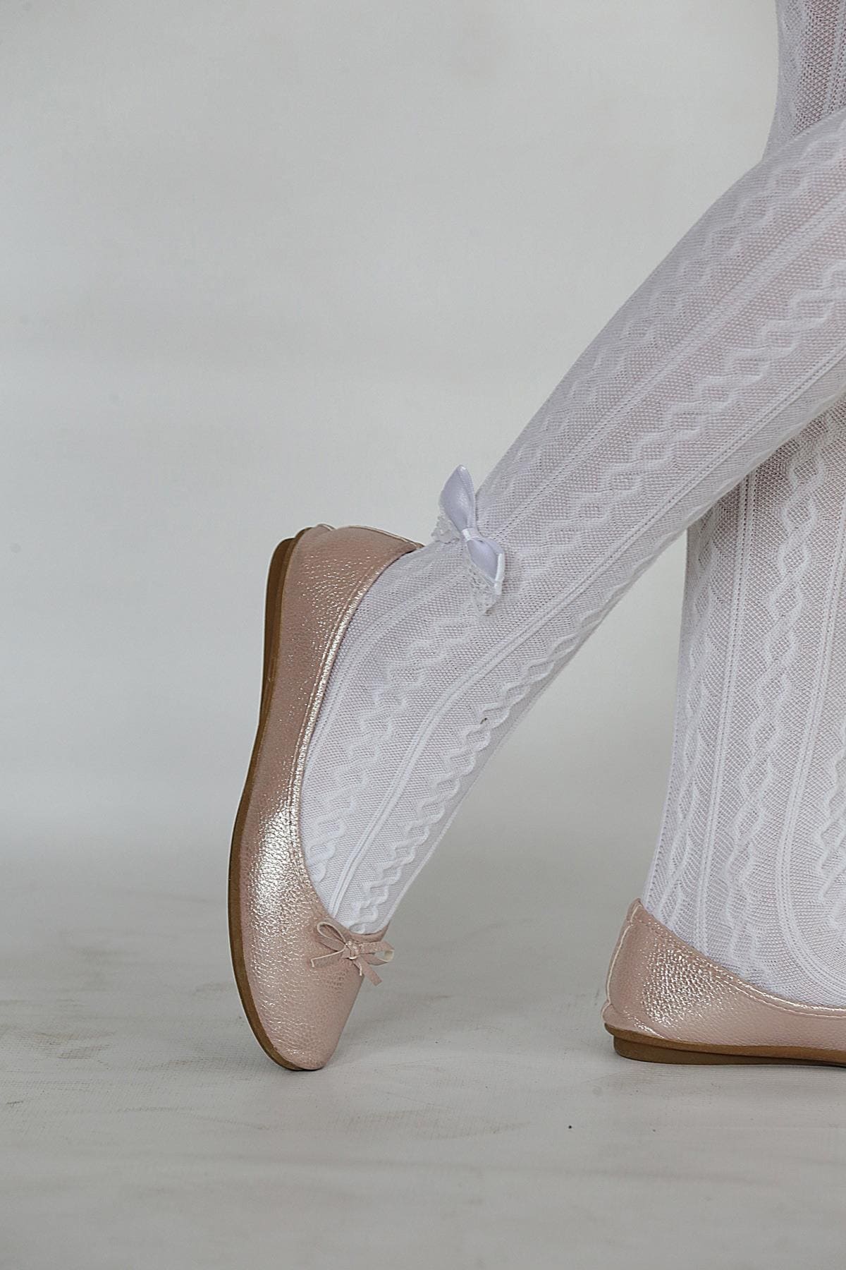 Beyaz renkte, yumuşak dokulu ve kaydırmaz tabanlı çocuk külotlu çorap. %60 Cotton, %32 Polyamide, %8 Elastane