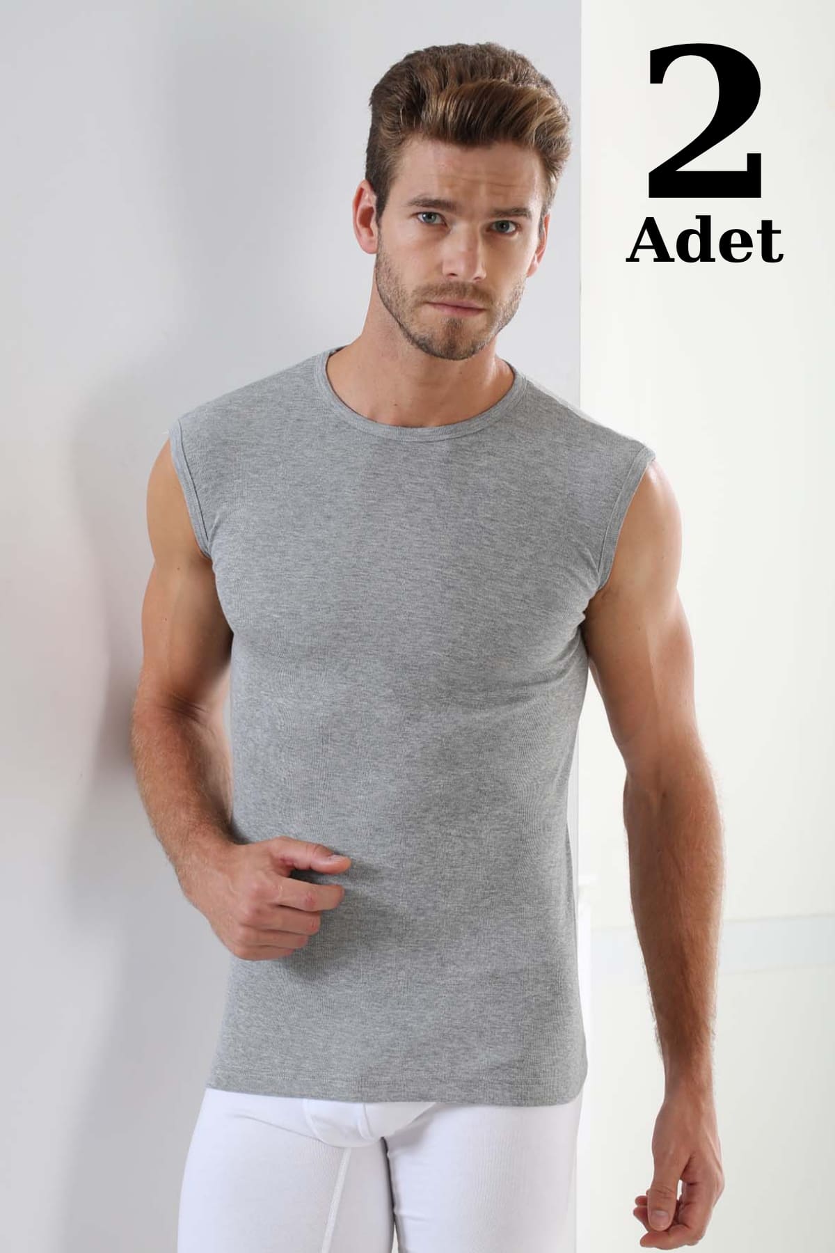 Gri renkte, ribana yapısıyla esnek bir uyum sağlayan kolsuz erkek atleti, günlük kullanım için idealdir. %100 Pamuk