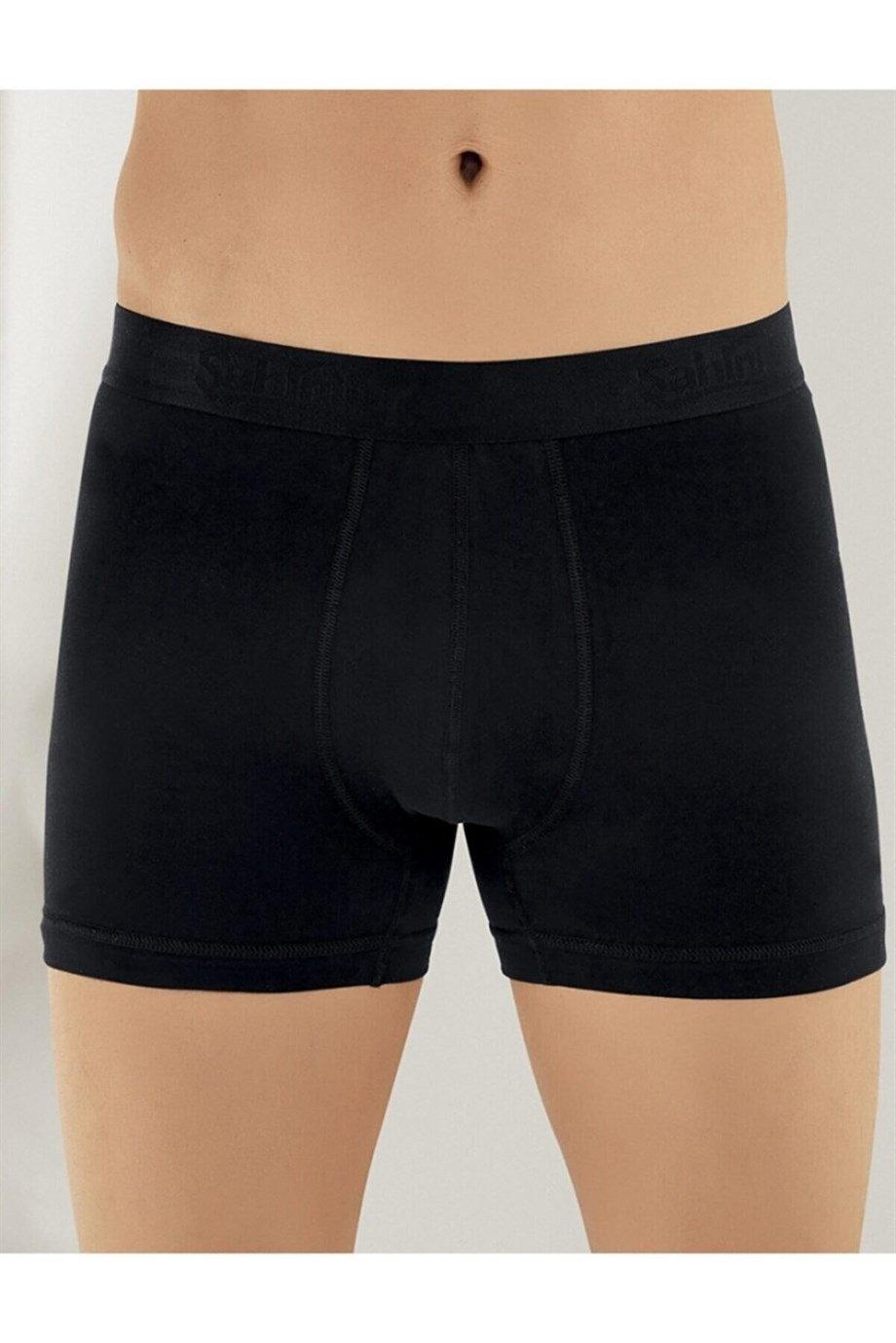 Siyah renkli, pamuk ve likra karışımıyla üretilmiş, esnek bel lastiği olan boxer. %93 Pamuk, %7 Likra