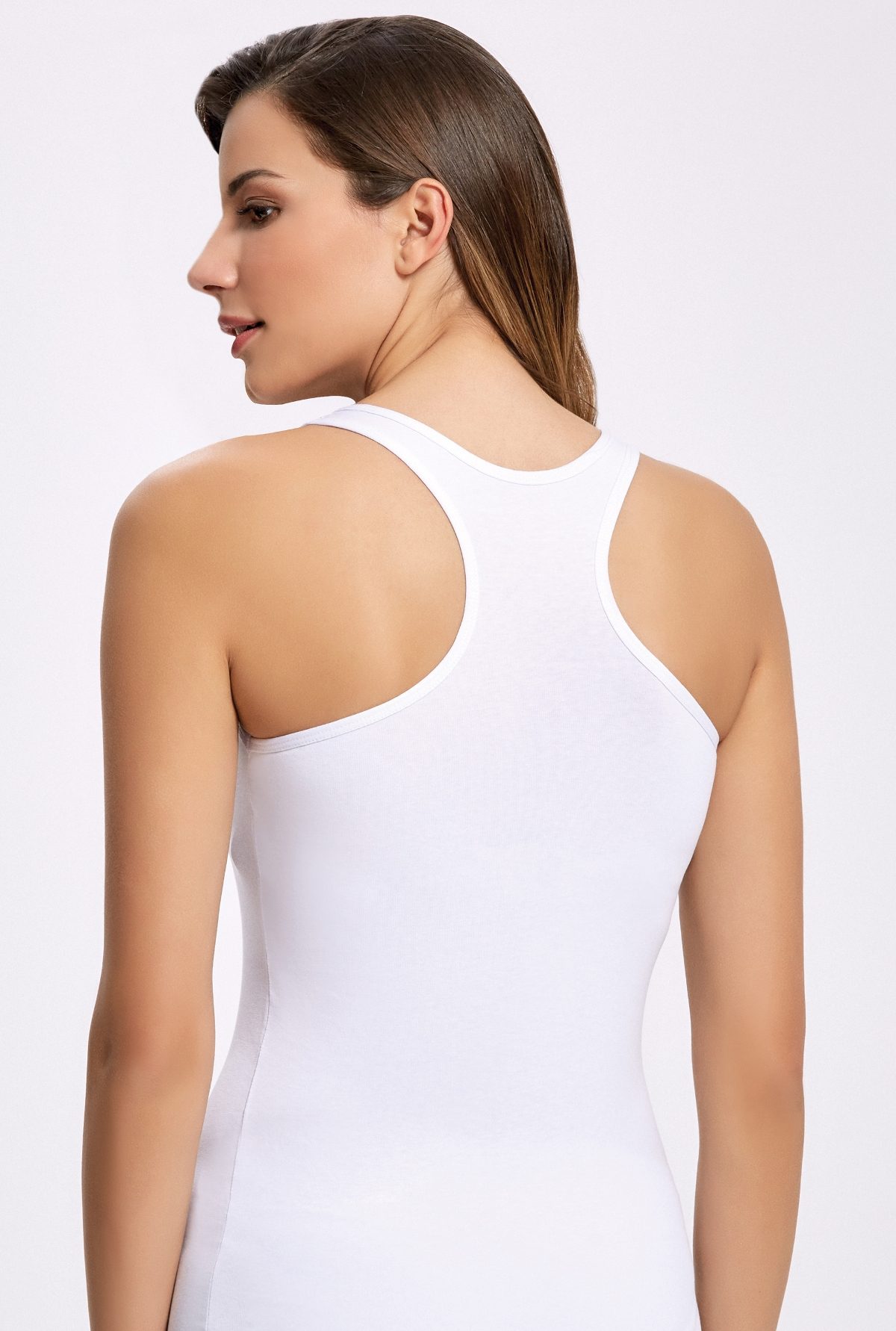 Beyaz renkte, geniş askılı, yumuşak dokulu pamuklu atlet. Esnek yapısı ile konfor sunar. %92 Pamuk, %8 Elastan