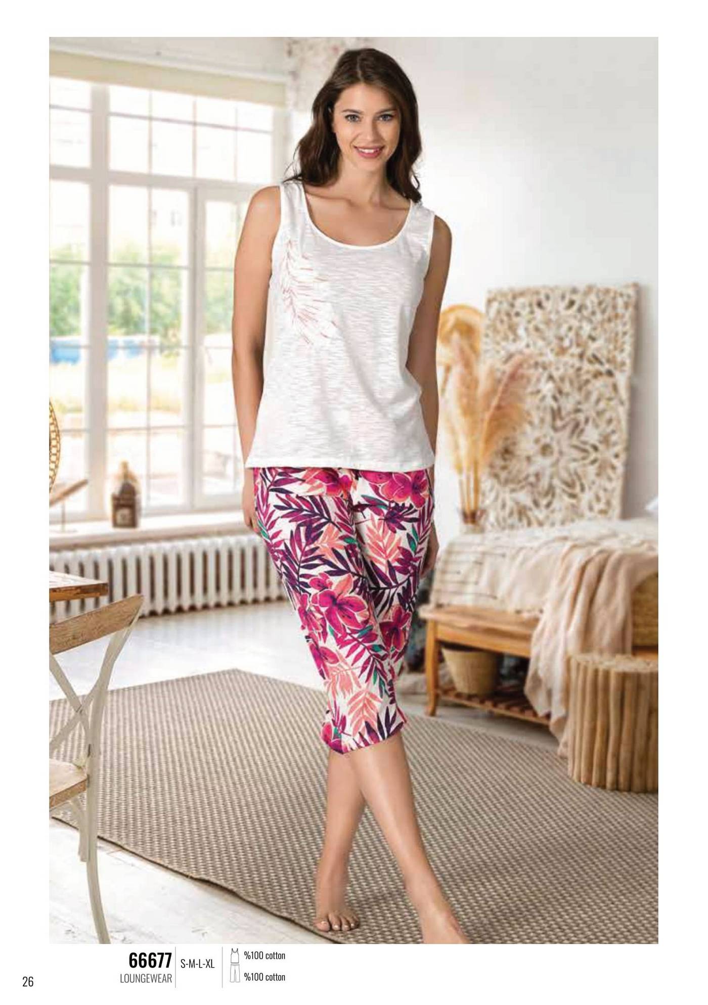 Yaz Pijama Loungewear NBB 66677, yaz aylarının sıcak günlerine uygun olarak tasarlanmış bir pijama takımı. Pamuklu kumaşı sayesinde hem hafif hem de nefes alan bir yapı sunarak, sıcak havalarda ferahlık sağlar. Üst kısmındaki kalın askı detayları ise şıklığı artırırken, hareket özgürlüğü de sağlar.