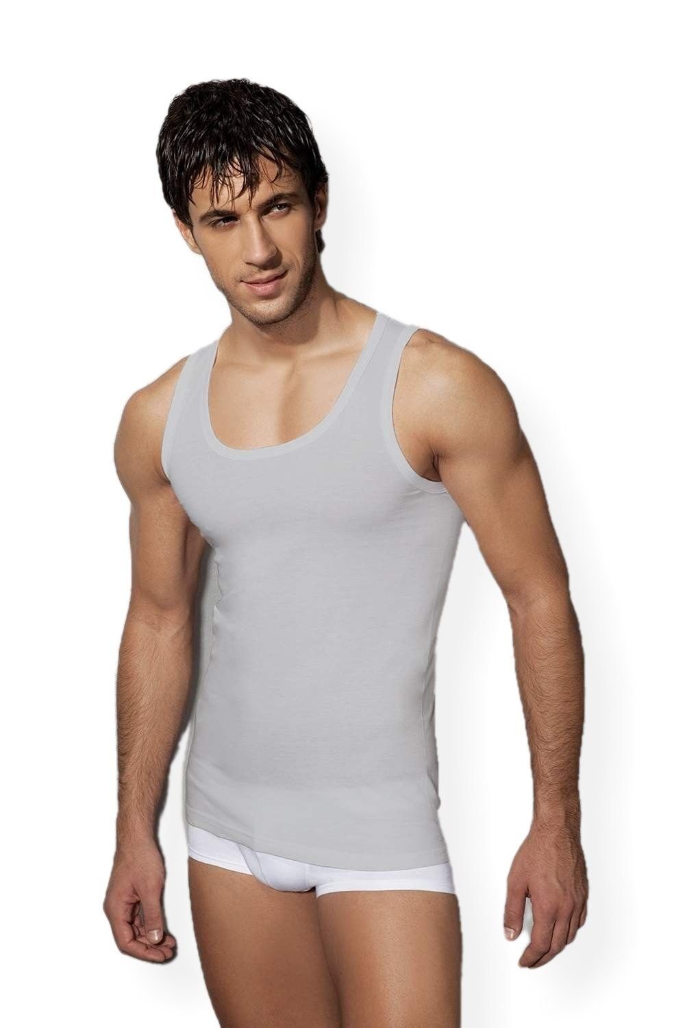 Siyah, gri ve beyaz tonlarında, ribana kesimi ile esnek yapıya sahip erkek atlet. %100 Pamuk