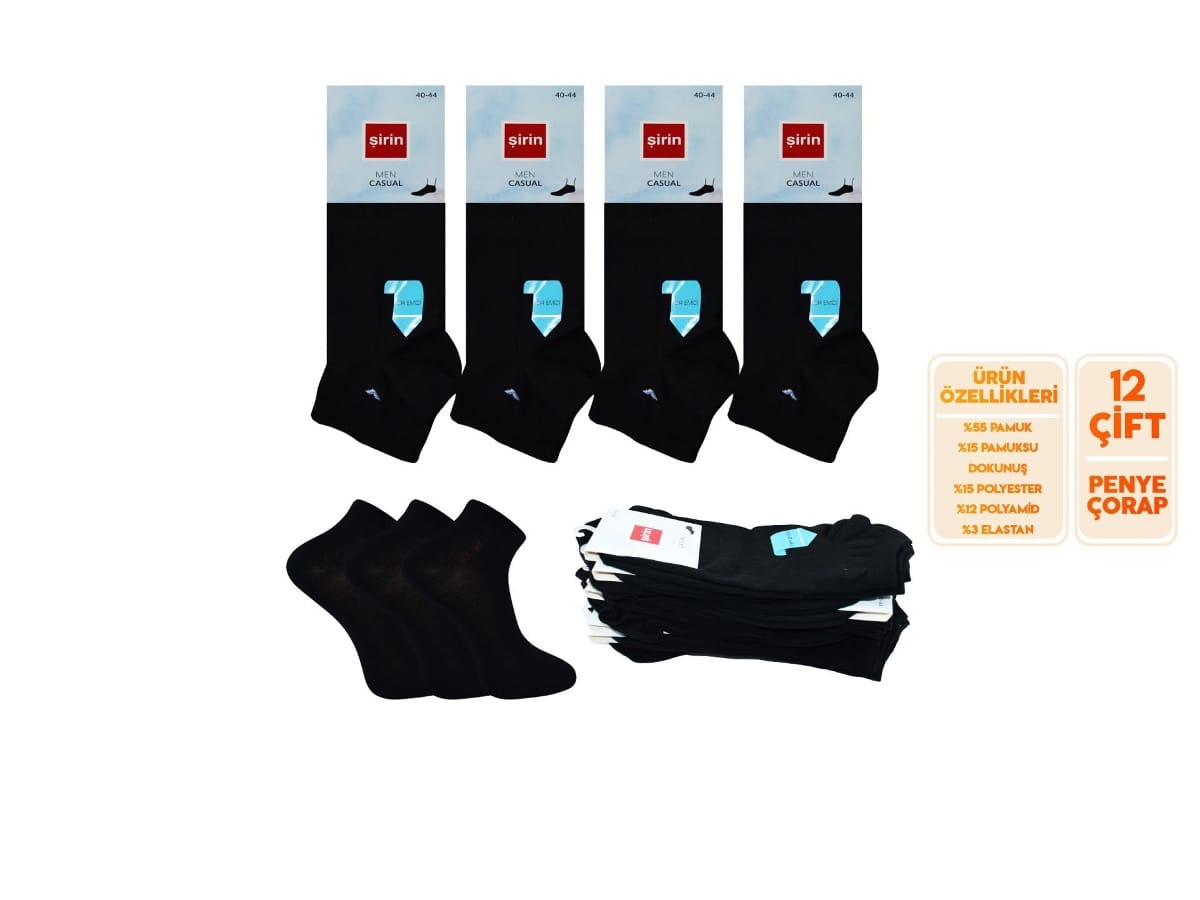 Bu çorap seti, 12 adetten oluşarak her gün için ihtiyaçlarınızı karşılamaya yönelik tasarlanmıştır. Şirin markasının kalitesi ile üretilen bu patik çoraplar, farklı stillere uyum sağlayarak günlük kombinlerinizi tamamlar. Her bir çorap, şıklığı ve rahatlığı bir araya getirerek gardırobunuzda vazgeçilmez bir parça haline gelir. Siyah rengi ile her kıyafetle uyumlu olmasının yanı sıra, kullanım kolaylığı ile de dikkat çeker.