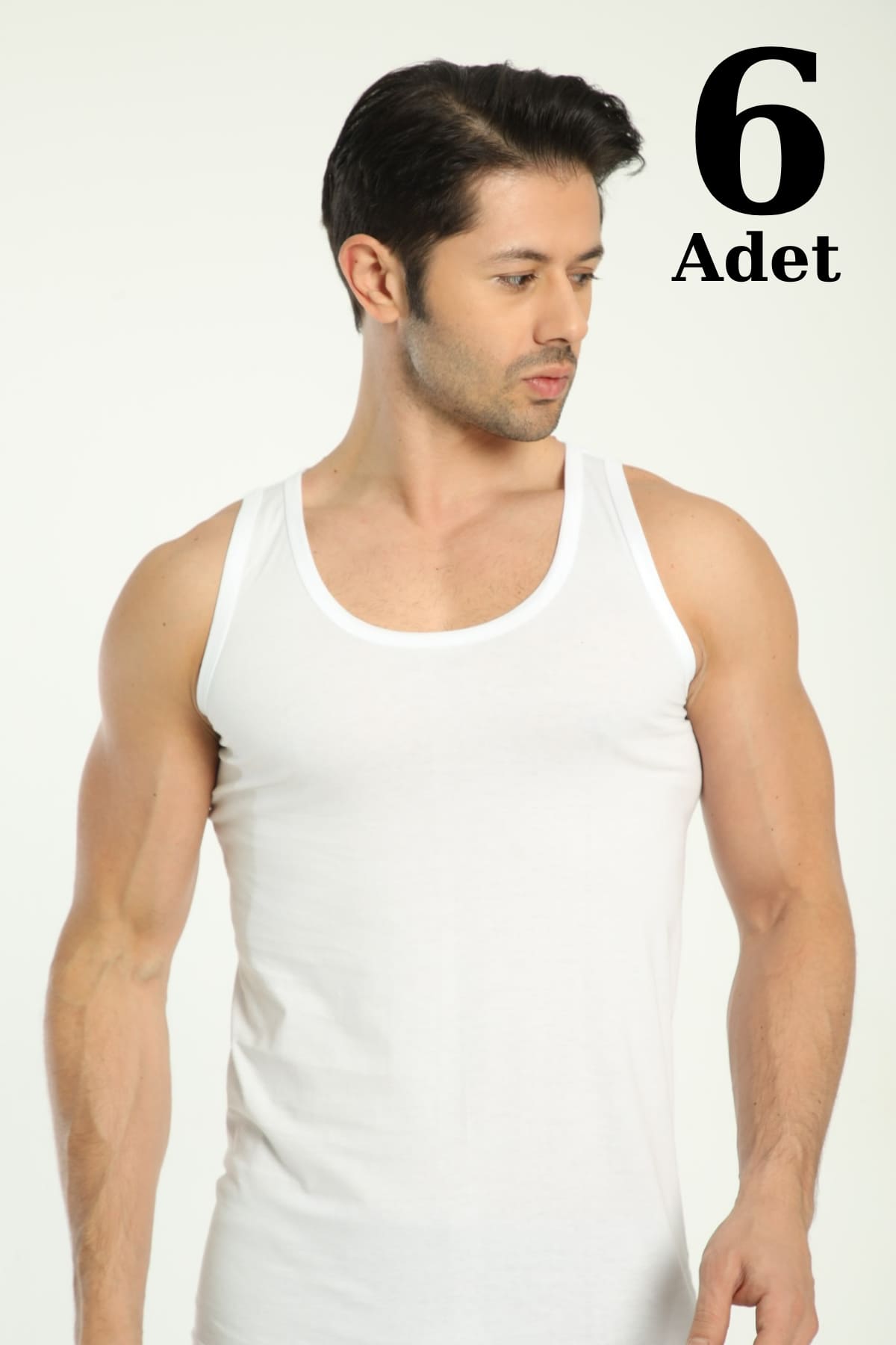 Beyaz renkli, pamuklu, uzun kesim atletlerden oluşan 6'lı paket. Rahat ve esnek yapısıyla günlük kullanım için ideal. %100 Pamuk
