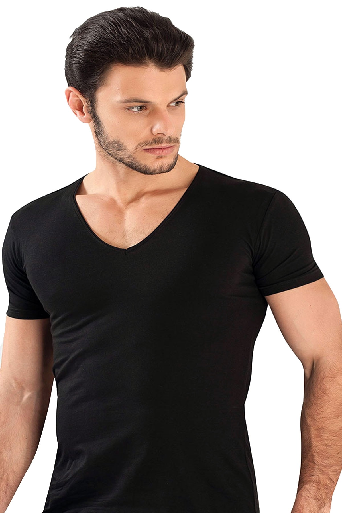 Siyah ve gri renk seçenekleriyle, pamuklu dokuya sahip V yaka erkek atlet, rahat kesimiyle dikkat çekiyor. %100 Pamuk