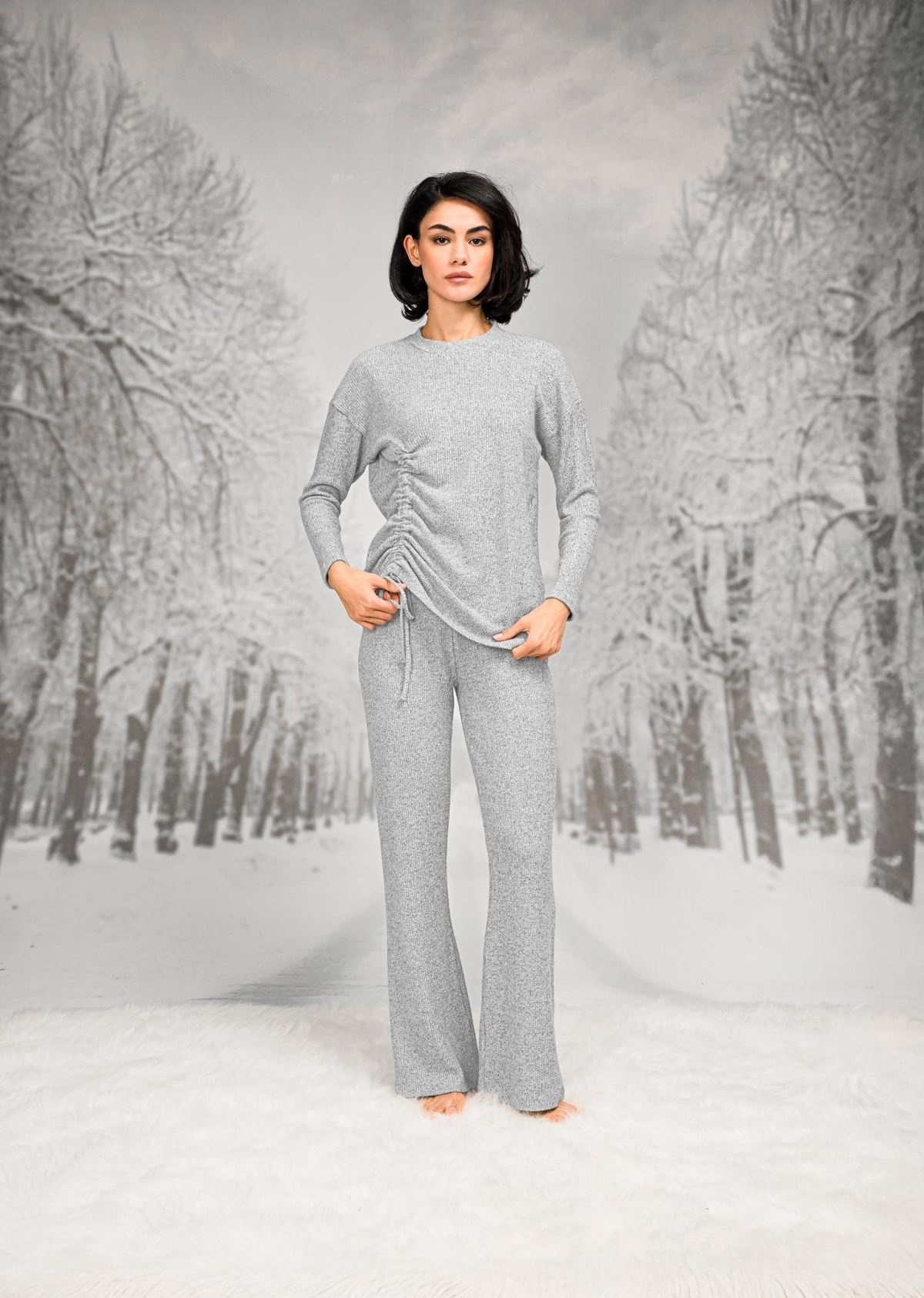 Yandan büzgülü tasarımıyla öne çıkan bu t-shirt pantolon takımı, hem şıklığı hem de konforu bir arada sunuyor. Pamuk ve polyester karışımı sayesinde, kumaşın dokusu oldukça yumuşak ve hafif. Bu özellik, vücuda oturan yapısıyla birleştiğinde, gün boyu rahat bir kullanım sağlıyor. Aynı zamanda, pamuklu iç yapısı sayesinde ciltle dost bir deneyim sunuyor.