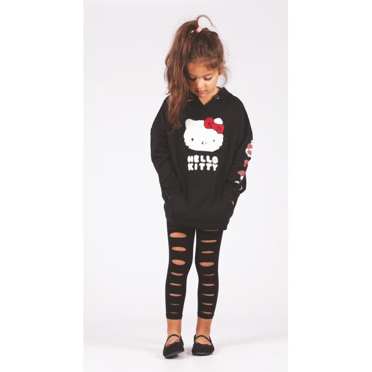 Siyah renginde, yırtık detaylara sahip pamuklu çocuk taytı. Rahat kesimiyle günlük kullanıma uygun.