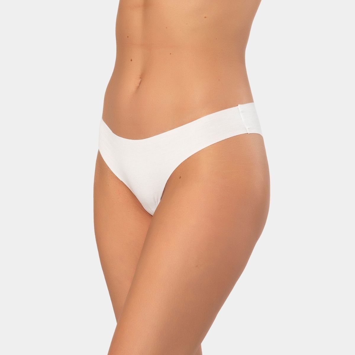 Beyaz renkli, lazer kesim detayı ile tasarlanmış, pamuklu yüksek bel Brazilian külot. %88 Pamuk, %12 Elastan