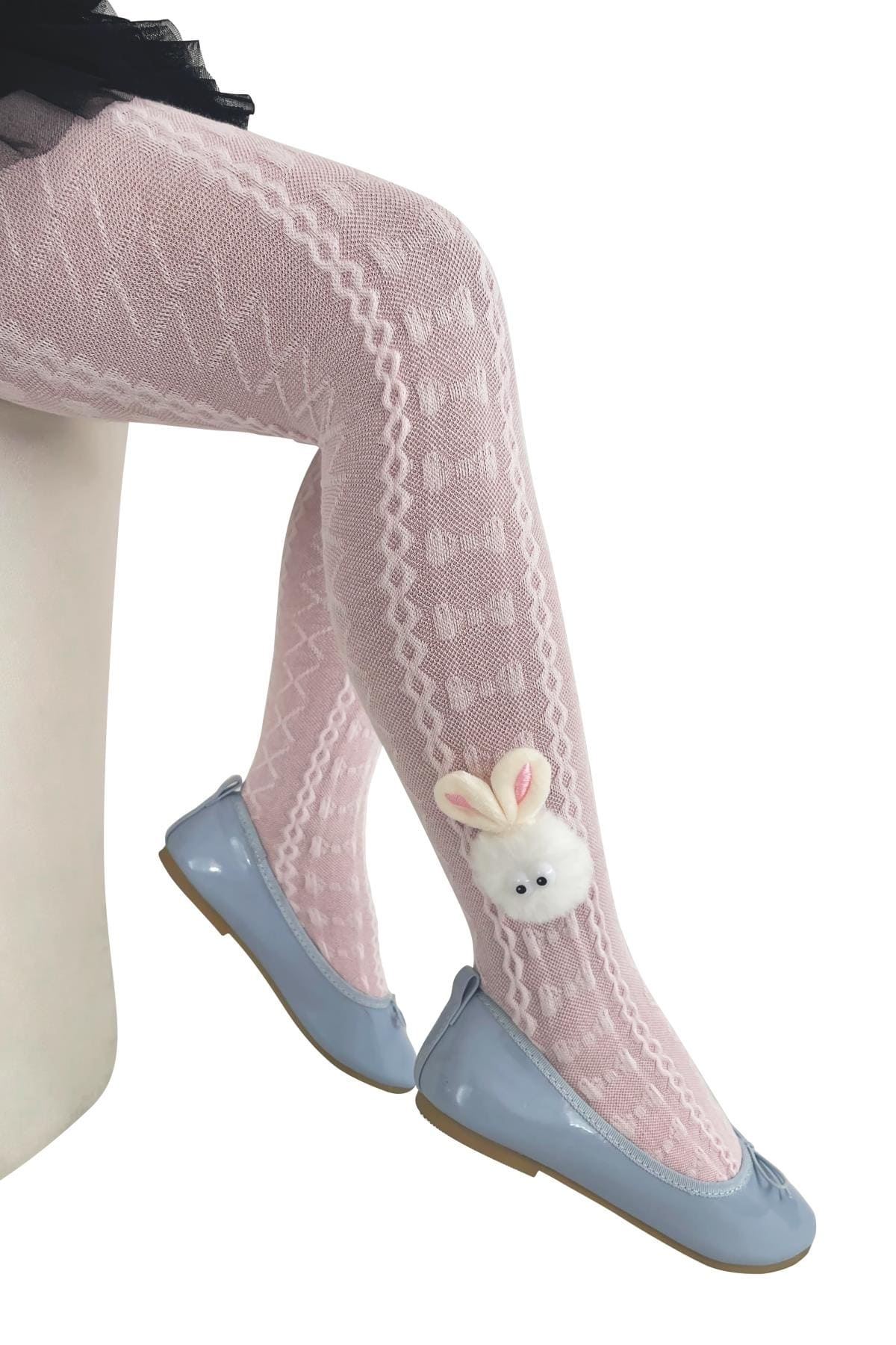 Kırmızı renkte, ponpon tavşan desenli, yumuşak dokuya sahip çocuk külotlu çorap.