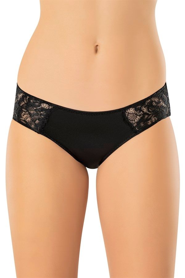 Kahverengi tonlarında, yüksek bel yapısına sahip, dantel detaylı pamuklu külot. %92 Pamuk, %8 Elastan