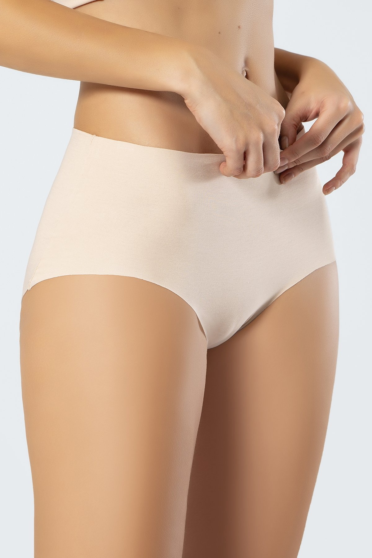 Ten rengi, yüksek bel kesimi ve lazer kesim detayları ile tasarlanmış pamuklu slip külot. %88 Supima Pamuk, %12 Elastan