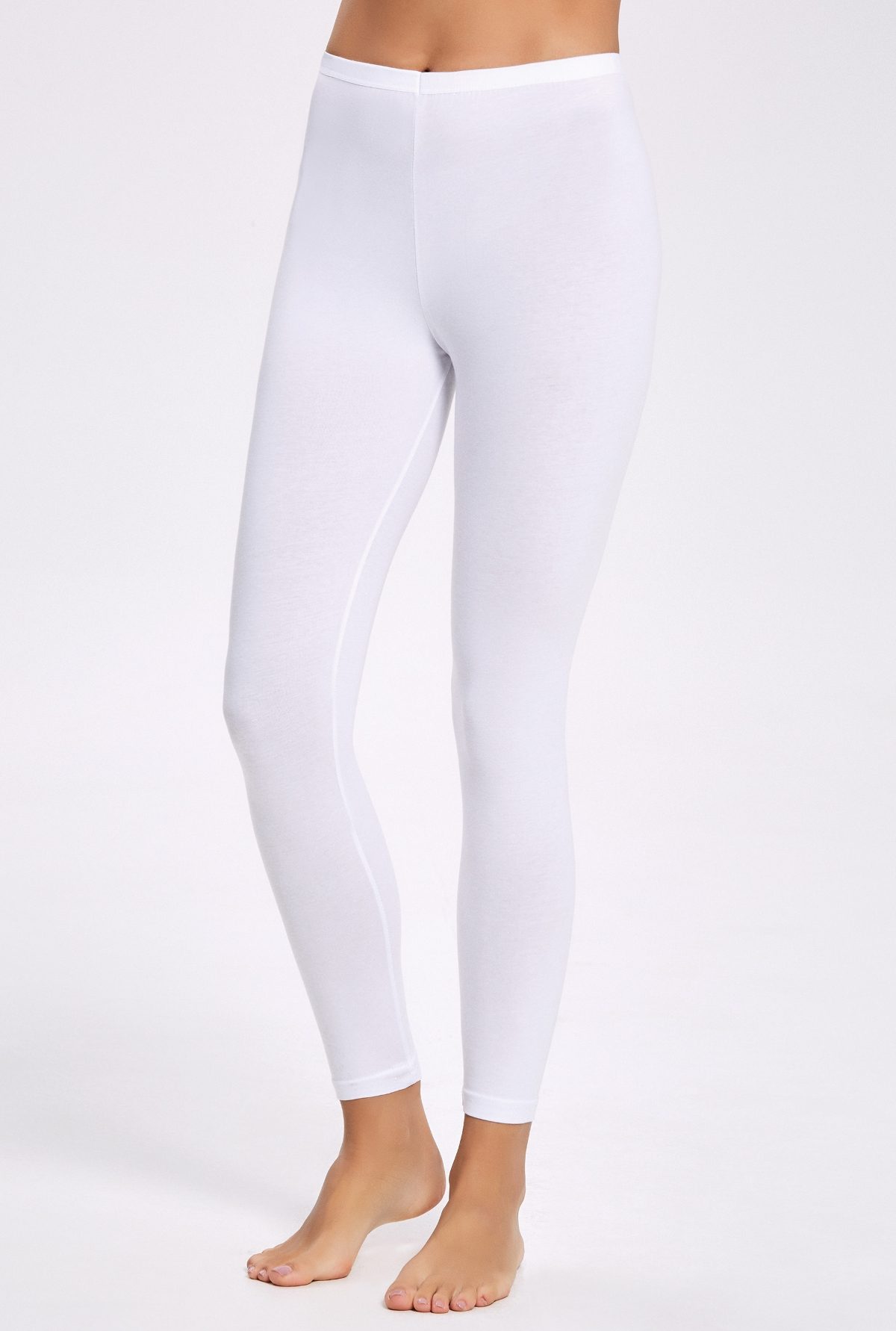 Beyaz renkte, yüksek bel tasarımı ve esnek kumaşıyla rahat bir uzun tayt. %92 Pamuk, %8 Elastan