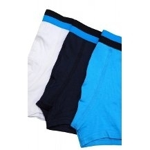 Lacivert-beyaz ve gri-beyaz renk seçeneklerine sahip, yumuşak lastikli üçlü boxer seti.