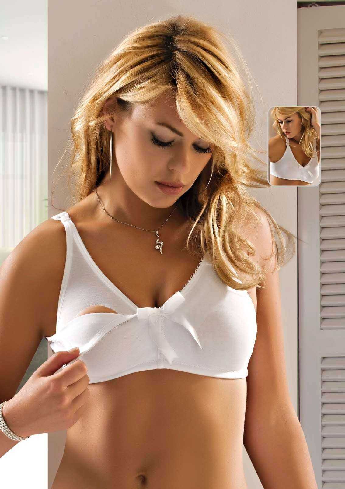 Pamuklu yapısı ve pratik emzirme klipsi ile rahat bir kullanım sunan beyaz loğusa sütyeni.